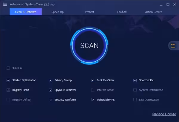 Advanced SystemCare Pro offers an always-on, automated, all-in-one PC optimization utility. It specializes in ONE-Click solutions that detect, clean, repair, speed up, and eventually protect PCs. Utilizing novel system technology, Advanced SystemCare empowers you to run your computer faster, ensuring greater stability and efficiency compared to other system utilities.