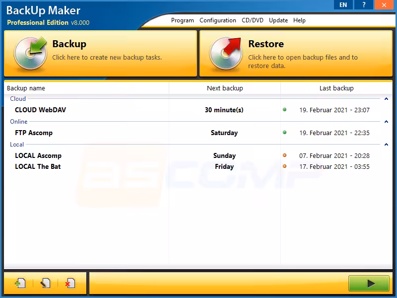 BackUp Maker: Easy-to-use data backup for Windows. Viruses, user errors, and computer crashes put you at risk of losing important data at any time. Therefore, it is crucial to secure your files regularly so that in cases of emergency, your computer data is still accessible.