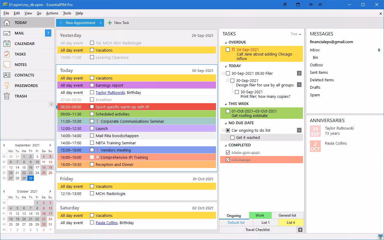 EssentialPIM is a smart alternative to Microsoft Outlook with a user-friendly interface allowing you to deal with and organize your daily tasks, emails, calendars, notes, contacts and password entries.