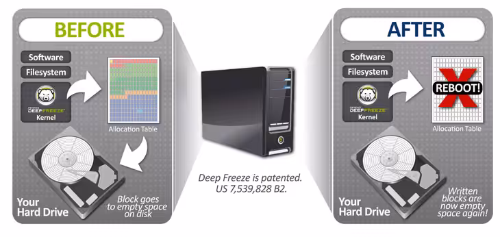 - Protection Against Phishing – Deep Freeze reverses malicious changes on reboot, protecting computers from threats such as phishing.