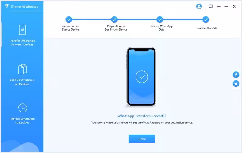 - 100% Success Rate: Successful WhatsApp transfer is guaranteed because of iMyFone’s professional team, advanced technology, and rich experience in data processing and transfer.