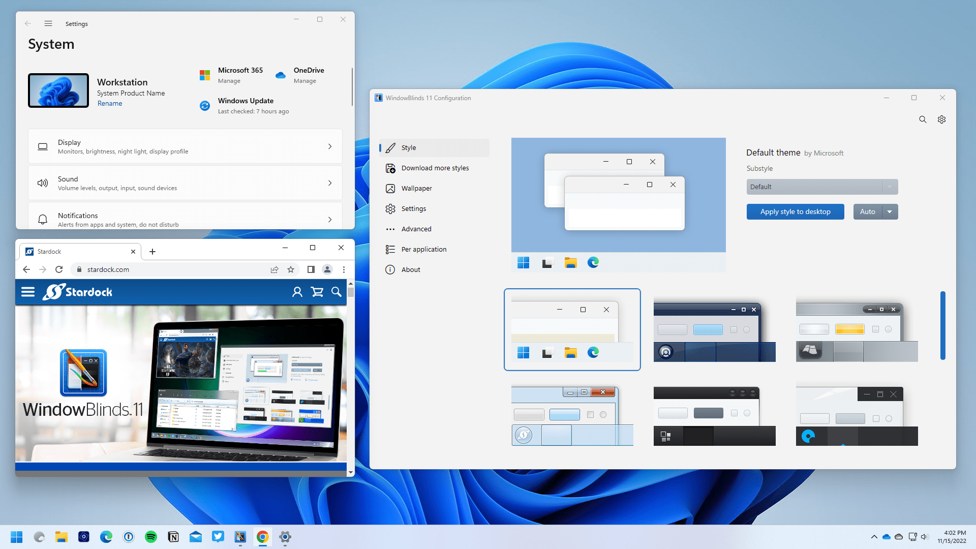 Stardock WindowBlinds enables you to make your desktop interface uniquely yours! From the start panel to the taskbar, window frames, and control buttons, WindowBlinds enables users to customize desktop interface themes called skins to personalize the look and feel of their desktop.