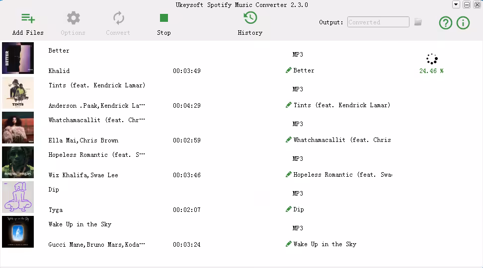 UkeySoft Spotify Music Converter is fully compatible with Windows 10/8/7 / Vista / XP, giving you the opportunity to download Spotify Music songs, and playlists and convert them from OGG Vorbis to regular MP3, M4A, WAV, and FLAC formats. It helps you enjoy Spotify songs without Spotify Premium, burn Spotify tracks to CD, play on MP3 players or M4A compatible music players, listen to Spotify songs on Android and iPhone, etc.